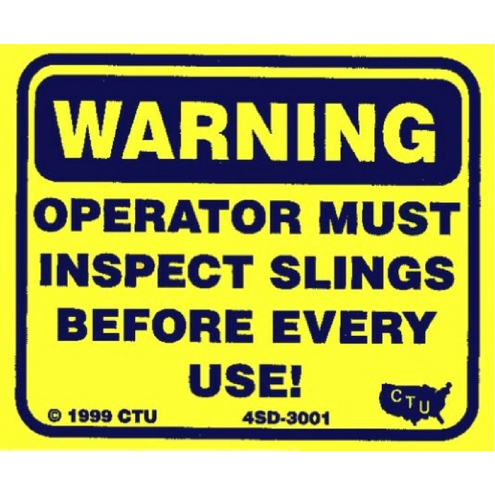 “WARNING – OPERATOR MUST INSPECT SLINGS BEFORE EVERY USE!” Decal