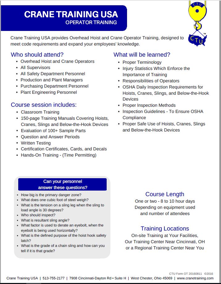 - 150-page Training Manuals Covering Hoists, Cranes, Slings and Below-the-Hook Devices